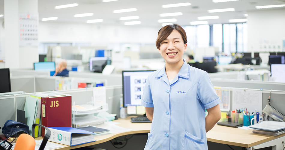 2015年4月に入社した青木英里佳さんは、高崎生まれの高崎育ち。大好きな地元で、世の中の役に立つような製品開発の仕事に携わりたい――。そんな思いで就職活動をしていた矢先に出会ったのが、ユタカ製作所だった。